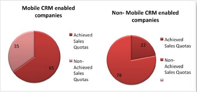 Trong khi đó, nghiên cứu của Innoppl Technologies tuyên bố rằng 65% nhân viên đại diện bán hàng đã sử dụng Mobile CRM và đạt được hạn ngạch bán hàng của họ, đáng kinh ngạc hơn là 78% những người không sử dụng CRM không đạt được mục tiêu tương tự.