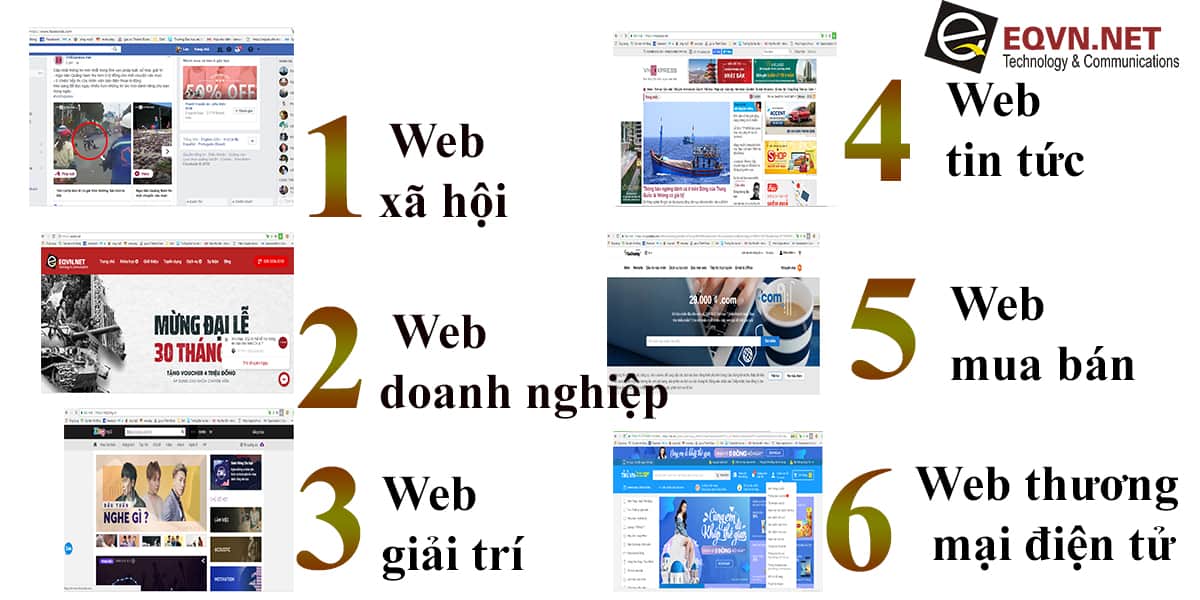 Tùy vào mục đích hiển thị và đối tượng sở hữu website được chia thành 6 loại chính: