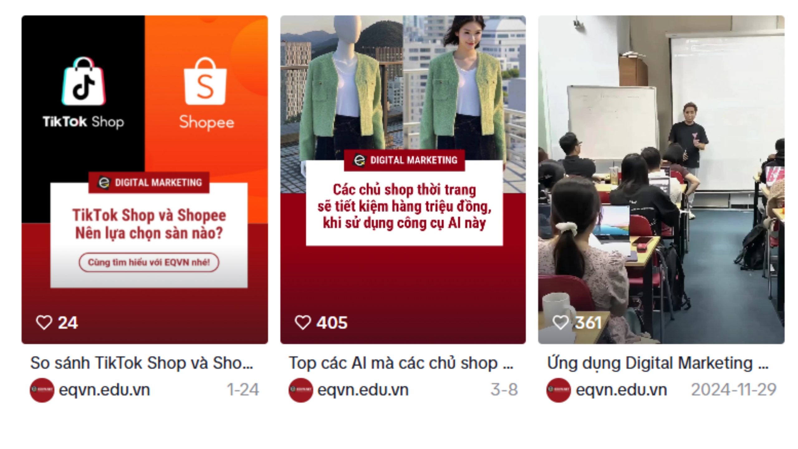EQVN là đơn vị tiên phong trong lĩnh vực đào tạo khóa học Digital Marketing từ năm 2009 và là đối tác chính thức của Facebook và Google. Với kinh nghiệm hơn 20 năm, chúng tôi sẽ cung cấp cho bạn những kiến thức Digital Marketing mới nhất và hữu ích nhất! Tìm hiểu thêm về EQVN tại đây nhé!