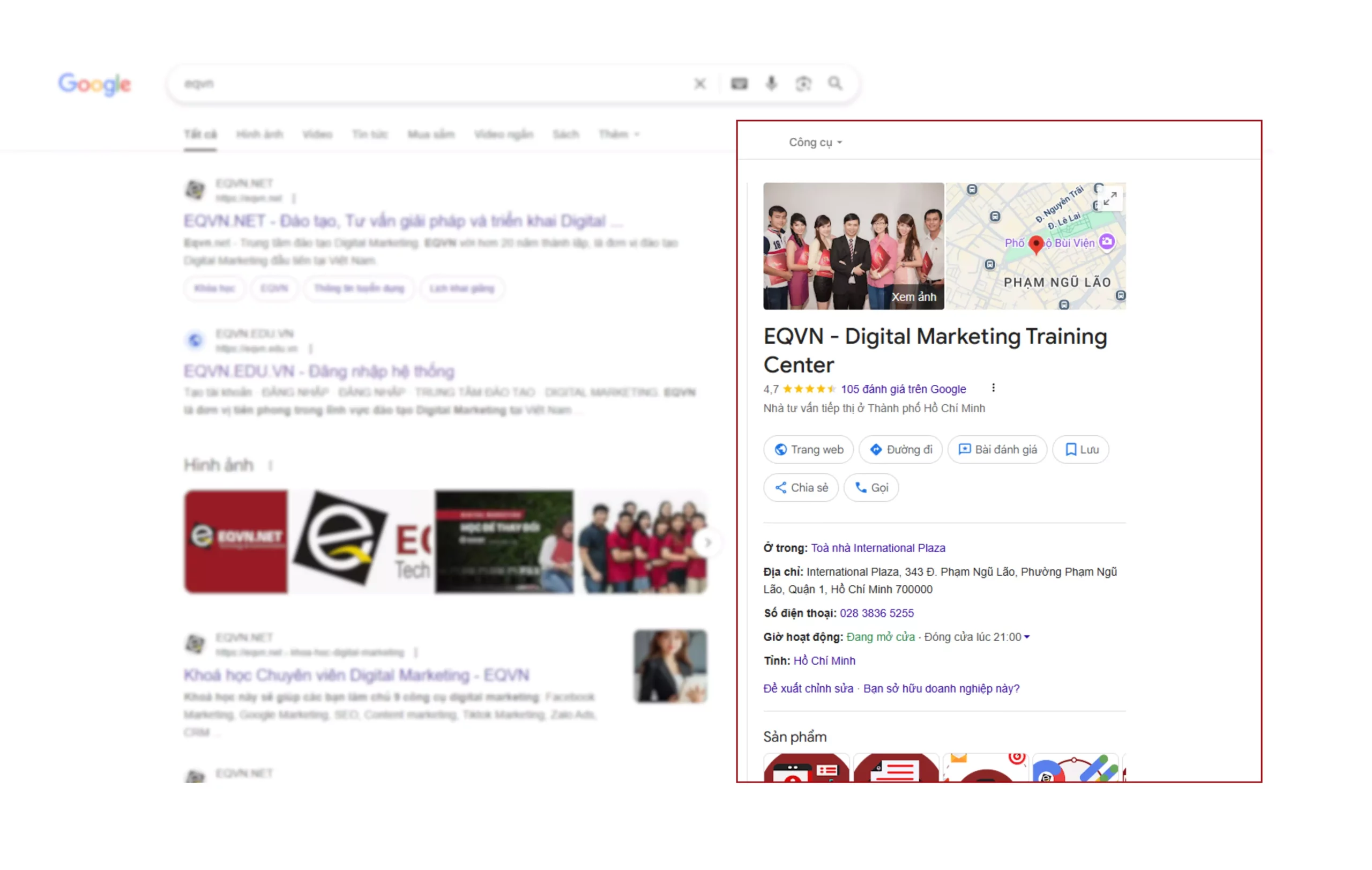 EQVN là đơn vị tiên phong trong lĩnh vực đào tạo khóa học Digital Marketing từ năm 2009 và là đối tác chính thức của Facebook và Google. Với kinh nghiệm hơn 20 năm, chúng tôi sẽ cung cấp cho bạn những kiến thức Digital Marketing mới nhất và hữu ích nhất! Tìm hiểu thêm về EQVN tại đây nhé!