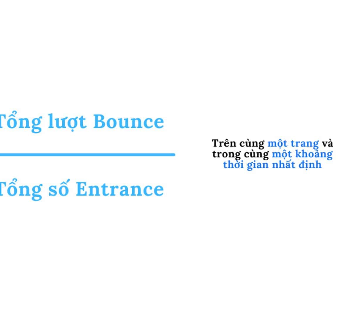Bounce Rate của website = Tổng lượt thoát (bounce) trong khoảng thời gian nhất định/Tổng số lần truy cập (entrance) trong cùng một khoảng thời gian đó.