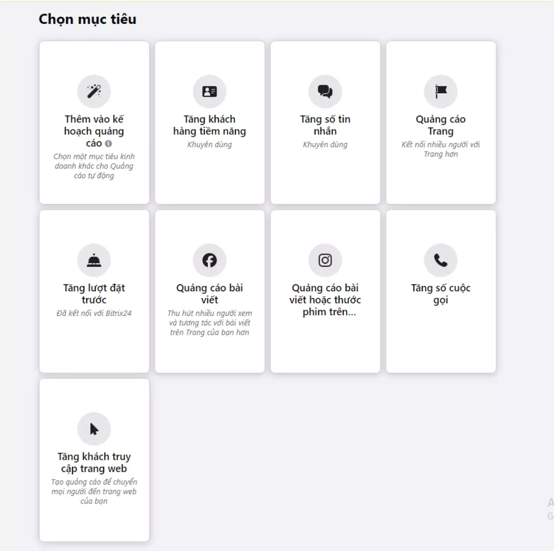 2. Các mục tiêu chiến dịch quảng cáo Facebook