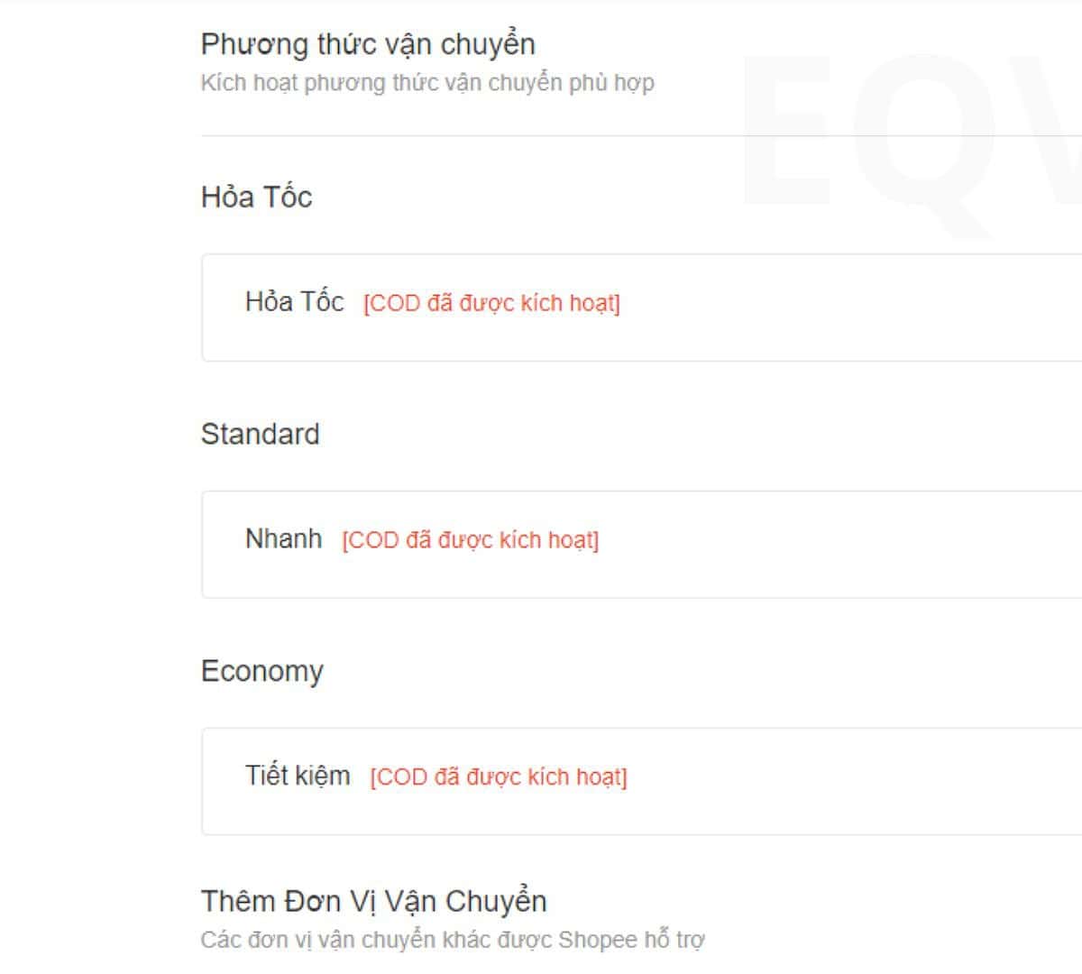 Tùy vào từng vị trí của kho hàng mà các hãng vận chuyển có sự ưu tiên khác nhau. Hiện nay Shopee có các đối tác vận chuyển: Giao hàng tiết kiệm, Giaohangnhanh, Viettel Post, VNPost và J&T Express. Nếu bạn mới bắt đầu bán hàng và muốn thử xem hãng vận chuyển nào có thể hỗ trợ tốt cho công việc bán hàng của mình thì có thể bật tất cả các hãng vận chuyển để chọn lựa dần sau đó điều chỉnh thành Thiết lập làm đơn vị vận chuyển ưu tiên.
