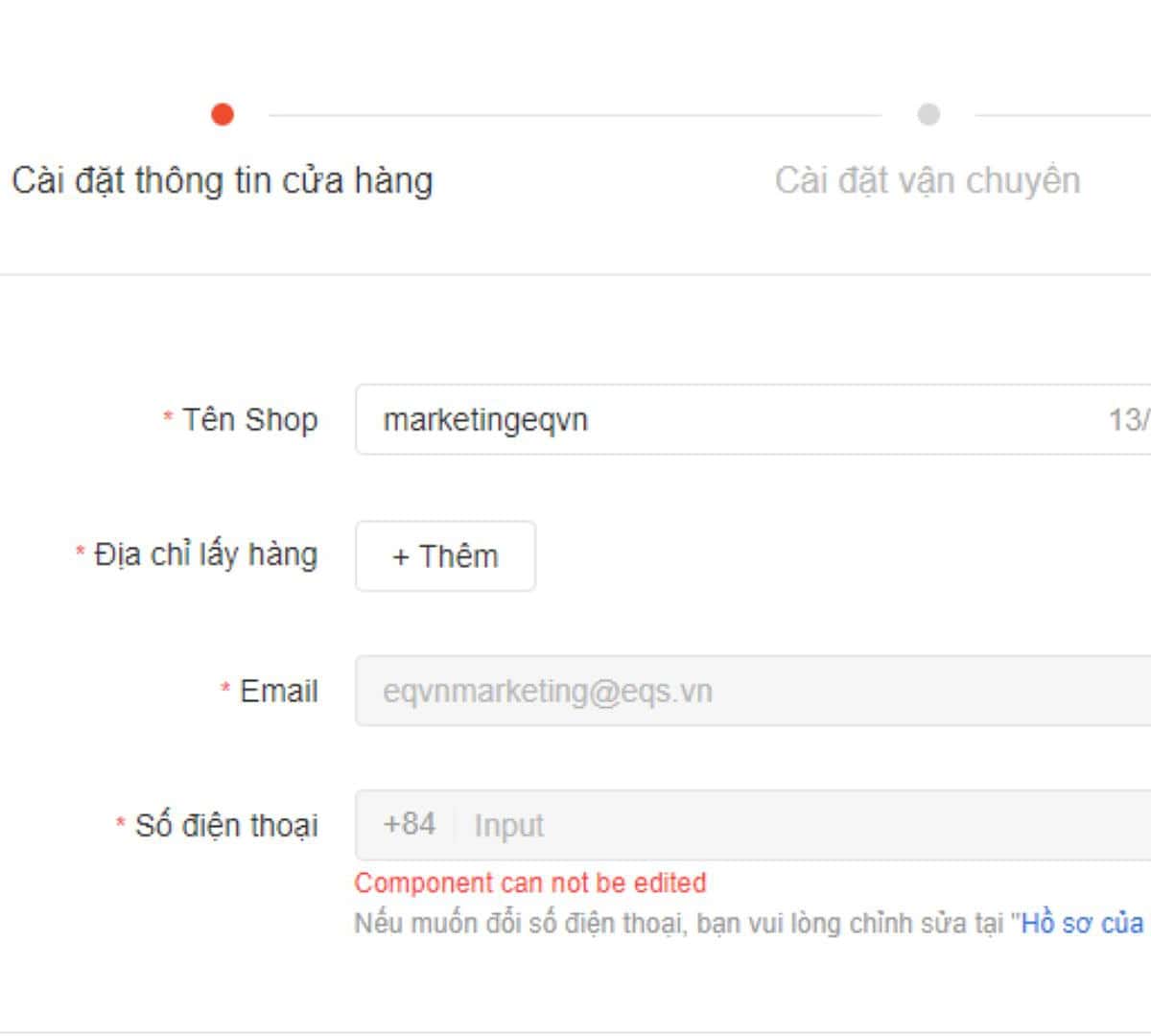 Vào mục Thiết lập Shop để hoàn thiện đầy đủ các thông tin cơ bản của shop