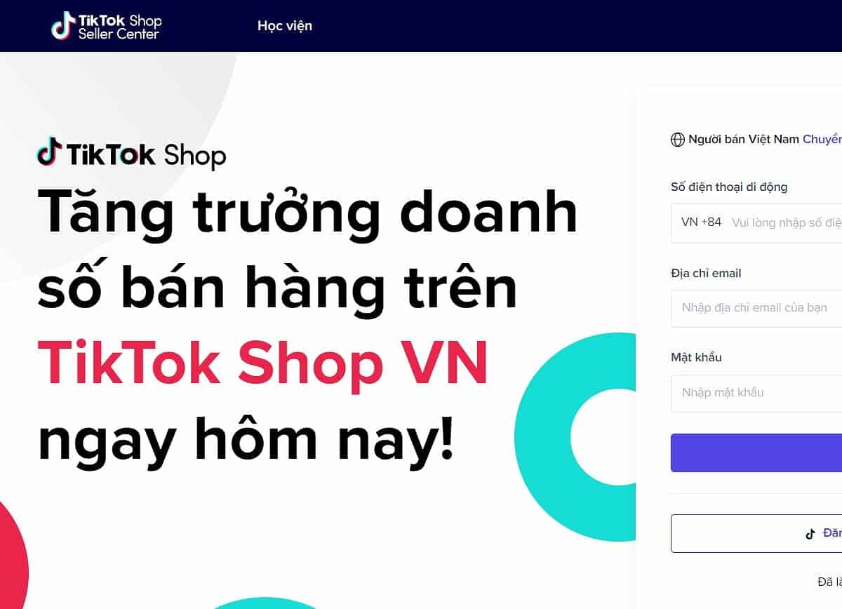 Bước 1: Truy cập đường dẫn https://seller-vn.tiktok.com/