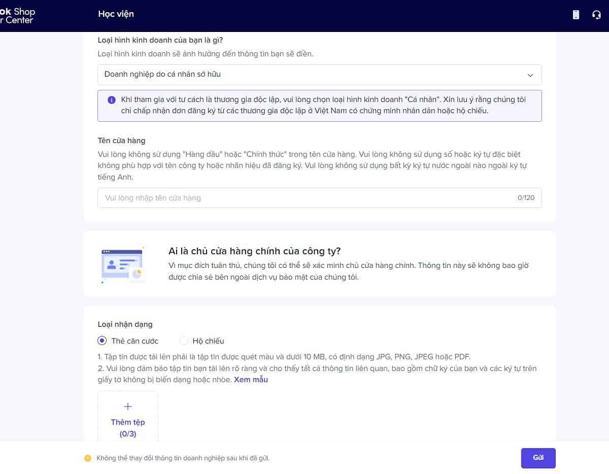 - Cá nhân: Yêu cầu xác minh qua căn cước công dân hoặc hộ chiếu.