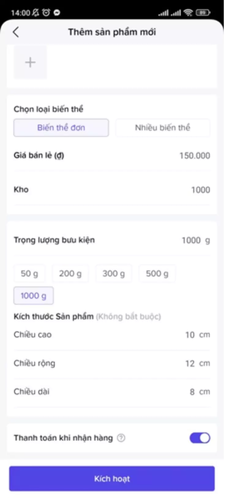 - Kích thước (không bắt buộc): Hãy mô tả rõ ràng về sản phẩm cho người mua hàng dễ hình dung.