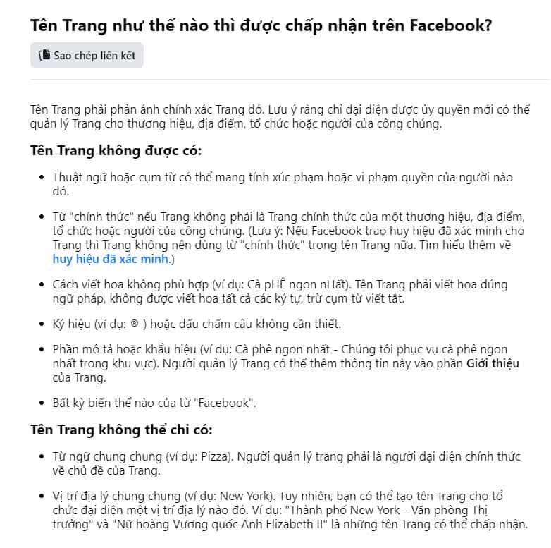 Những Quy định trong việc đặt tên Fanpage được nêu cụ thể như sau: