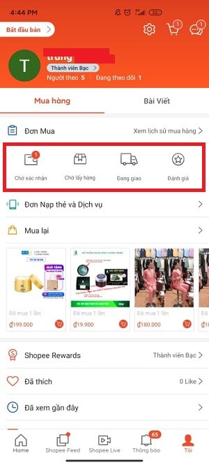Bạn đăng nhập vào tài khoản đã đặt hàng qua máy tính trên website Shopee hoặc thiết bị di động đều được. Sau đó chọn vào mục Tôi ở góc dưới bên phải màn hình (đối với ứng dụng trên điện thoại).