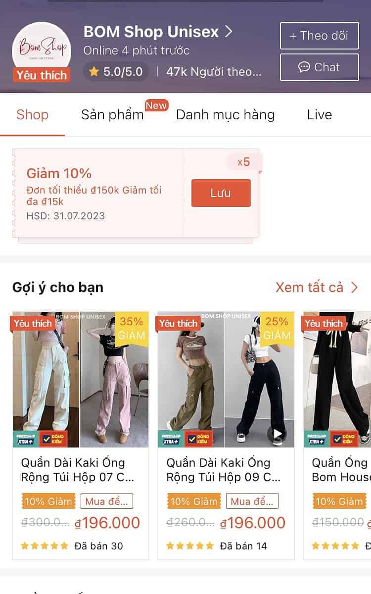 - Được gắn biểu tượng “Yêu thích” trên mỗi sản phẩm và gian hàng, tăng sự thu hút của khách hàng tiềm năng.