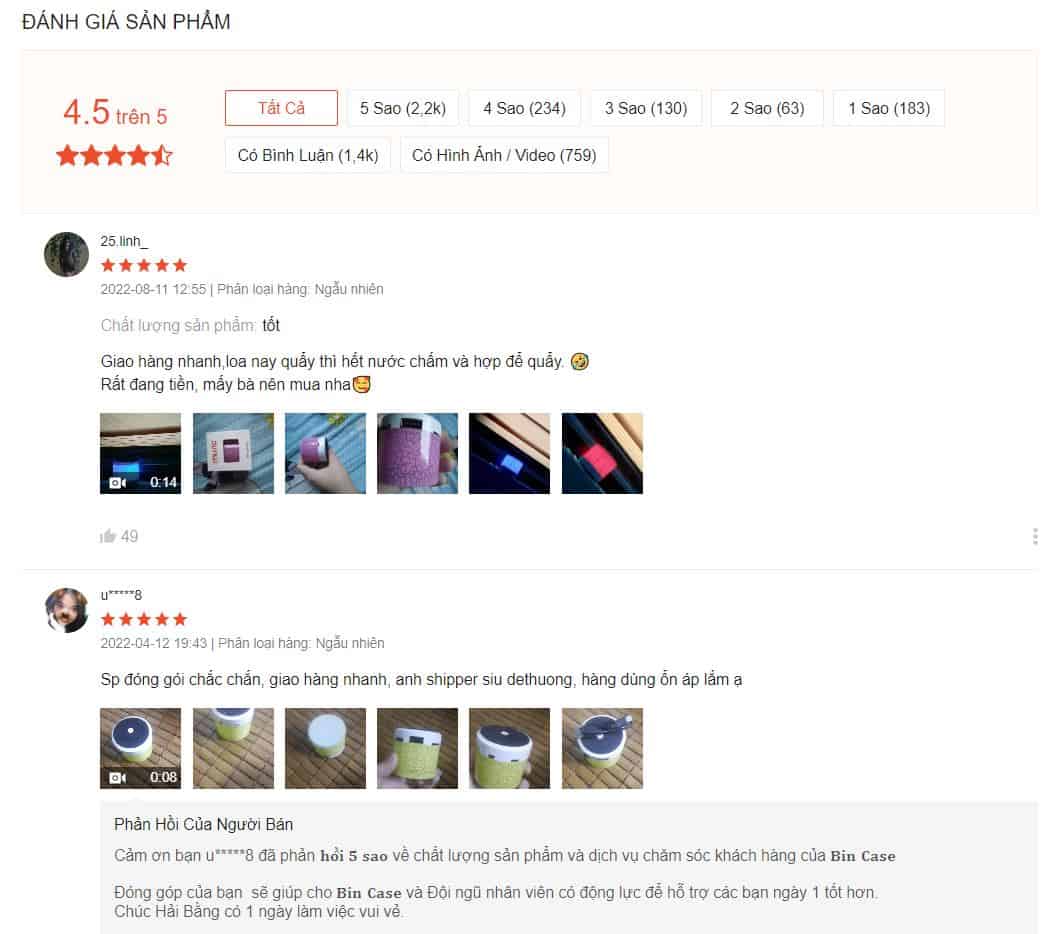 Chất lượng sản phẩm là yếu tố tiên quyết để người dùng quyết định mua hàng. Nếu bạn đọc đánh giá về chất lượng sản phẩm không đáp ứng các nhu cầu mà bạn mong muốn, đặc biệt nếu sản phẩm nhận được là hàng giả, hàng kém chất lượng, thì bạn đừng ngần ngại lựa chọn Shop cung cấp các sản phẩm tốt hơn.