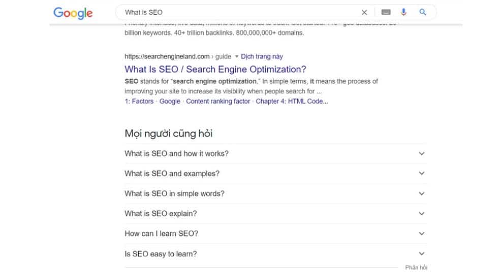 Mục “những câu hỏi liên quan” của tìm kiếm rộng rãi chứa một danh sách các câu hỏi mà mọi người hỏi liên quan đến truy vấn tìm kiếm bạn đã nhập. Nếu bạn cuộn xuống cùng một SERP một chút, bạn sẽ nhận được một danh sách các từ khóa đuôi dài ở dạng câu hỏi. Đơn giản như thế: