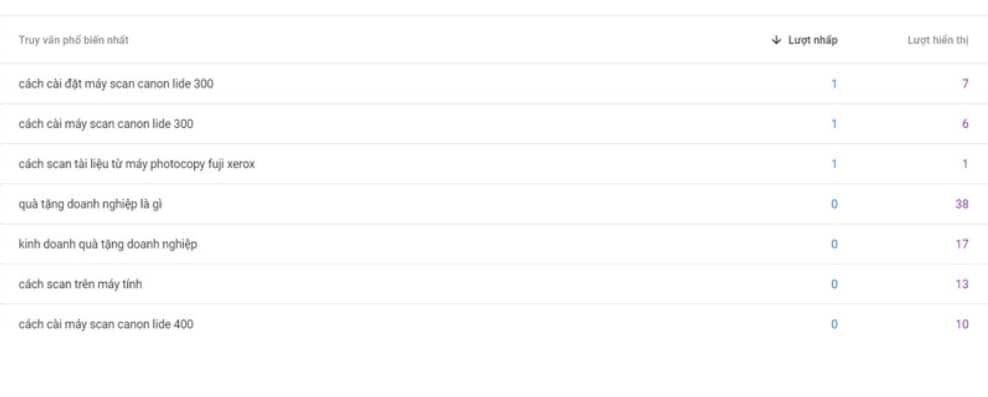 Bạn có thể tìm thấy Long-tail keywords mà bạn đã xếp hạng trong danh sách “Truy vấn”. Sau một số công việc phân tích, bạn sẽ có thể biết được Long-tail keywords nào xứng đáng được ưu tiên hàng đầu về SEO.