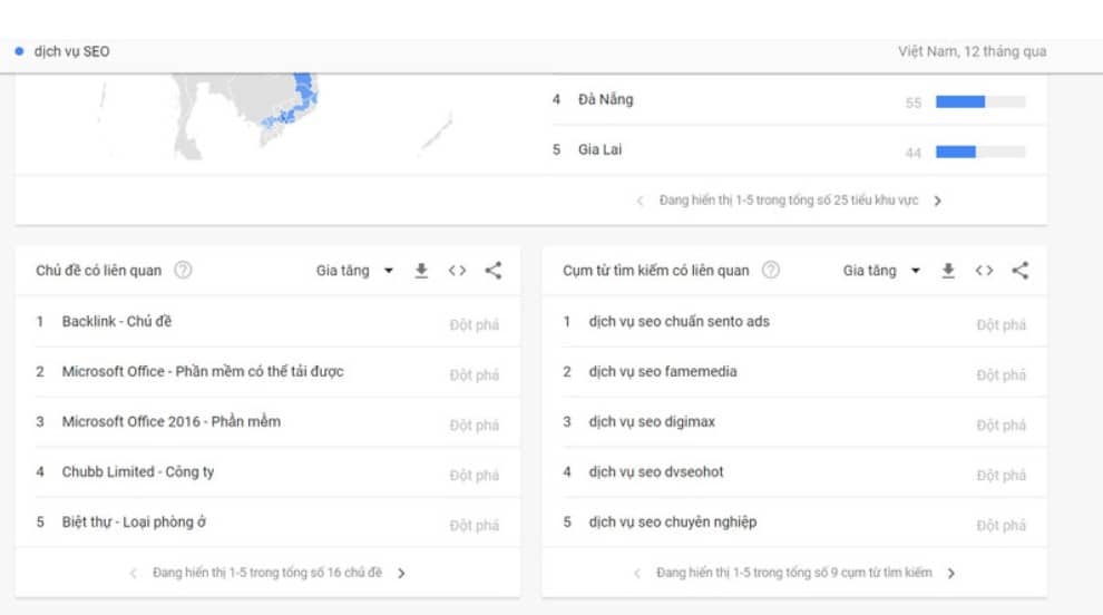 Nhập bất kỳ truy vấn tìm kiếm nào và xem liệu sự quan tâm đến chủ đề này đang gia tăng hay vào mùa thu. Bằng cách đó, bạn có thể thấy liệu một từ khóa nào đó có xứng đáng với sự chú ý của bạn ngay bây giờ hay không.