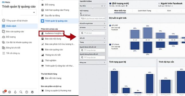 Bạn có thể truy cập Audience Insights thông qua trình quản lý Facebook Ads