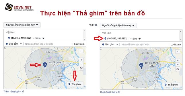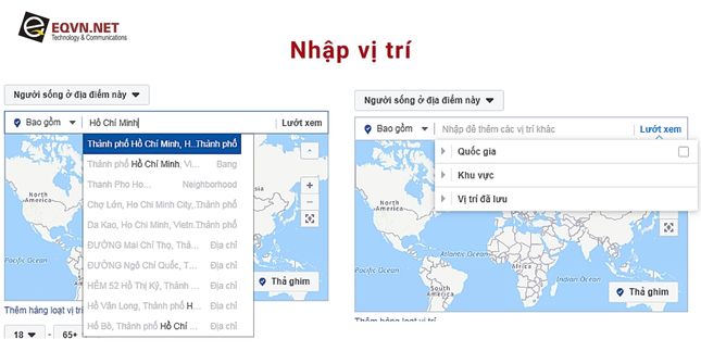 Target theo khu vực địa lý giúp bạn phân phối quảng cáo đến những người sống theo từng khu vực, như cả nước, các khu vực như thành phố hoặc một vùng hay thậm chí bán kính xung quanh một vị trí. Có ba phương pháp chính để chọn vị trí: