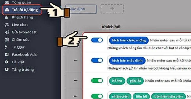 + Kịch bản từ khóa: Sử dụng để thu thập thông tin từ khách hàng dựa trên các từ khóa đã được mặc định trước đó.