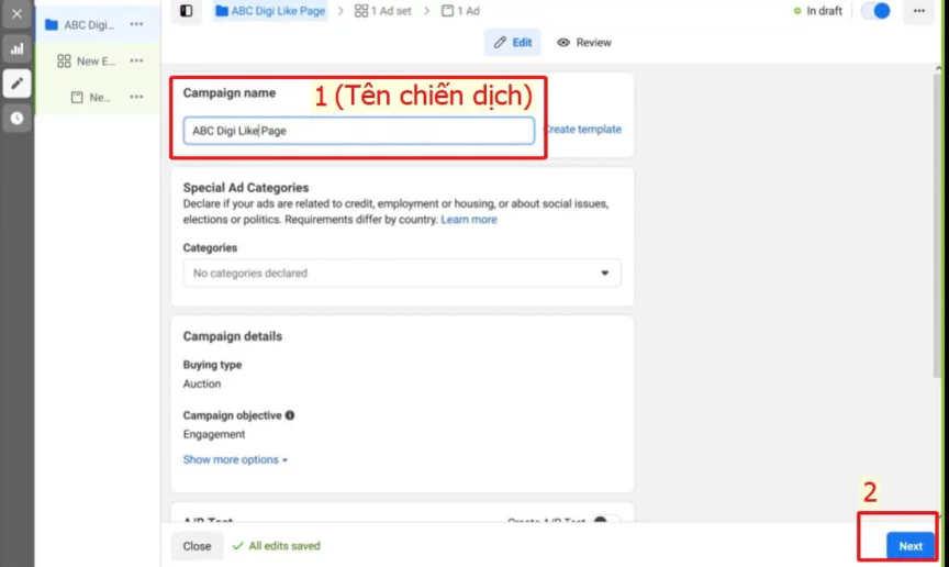 4.4. Cài đặt tên cho chiến dịch