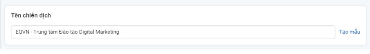 - Đặt tên cho chiến dịch: Đầu tiên, bạn cần đặt tên cho chiến dịch quảng cáo của mình. Nên đặt tên cho chiến dịch sao cho dễ nhận biết và quản lý các chiến dịch khác nhau mà bạn đã tạo.