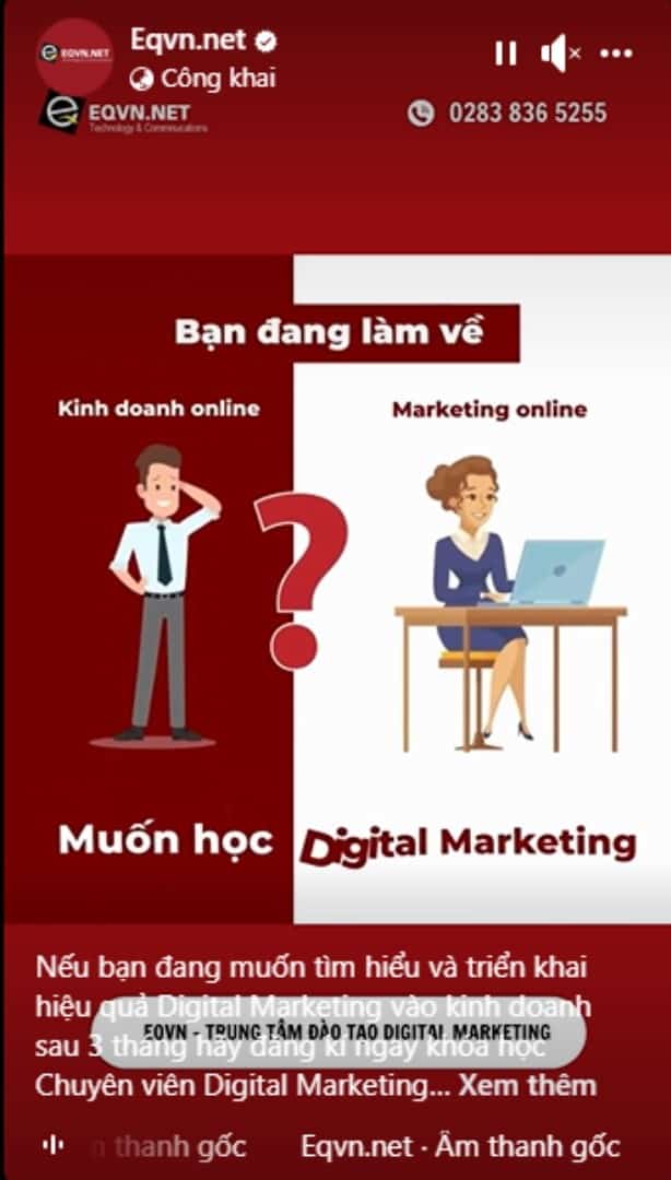 | EQVN là đơn vị tiên phong trong lĩnh vực đào tạo khóa học Digital Marketing từ năm 2009 và là đối tác chính thức của Facebook và Google. Với kinh nghiệm hơn 20 năm, chúng tôi sẽ cung cấp cho bạn những kiến thức Digital Marketing mới nhất và hữu ích nhất! Tìm hiểu thêm về EQVN tại đây nhé! |