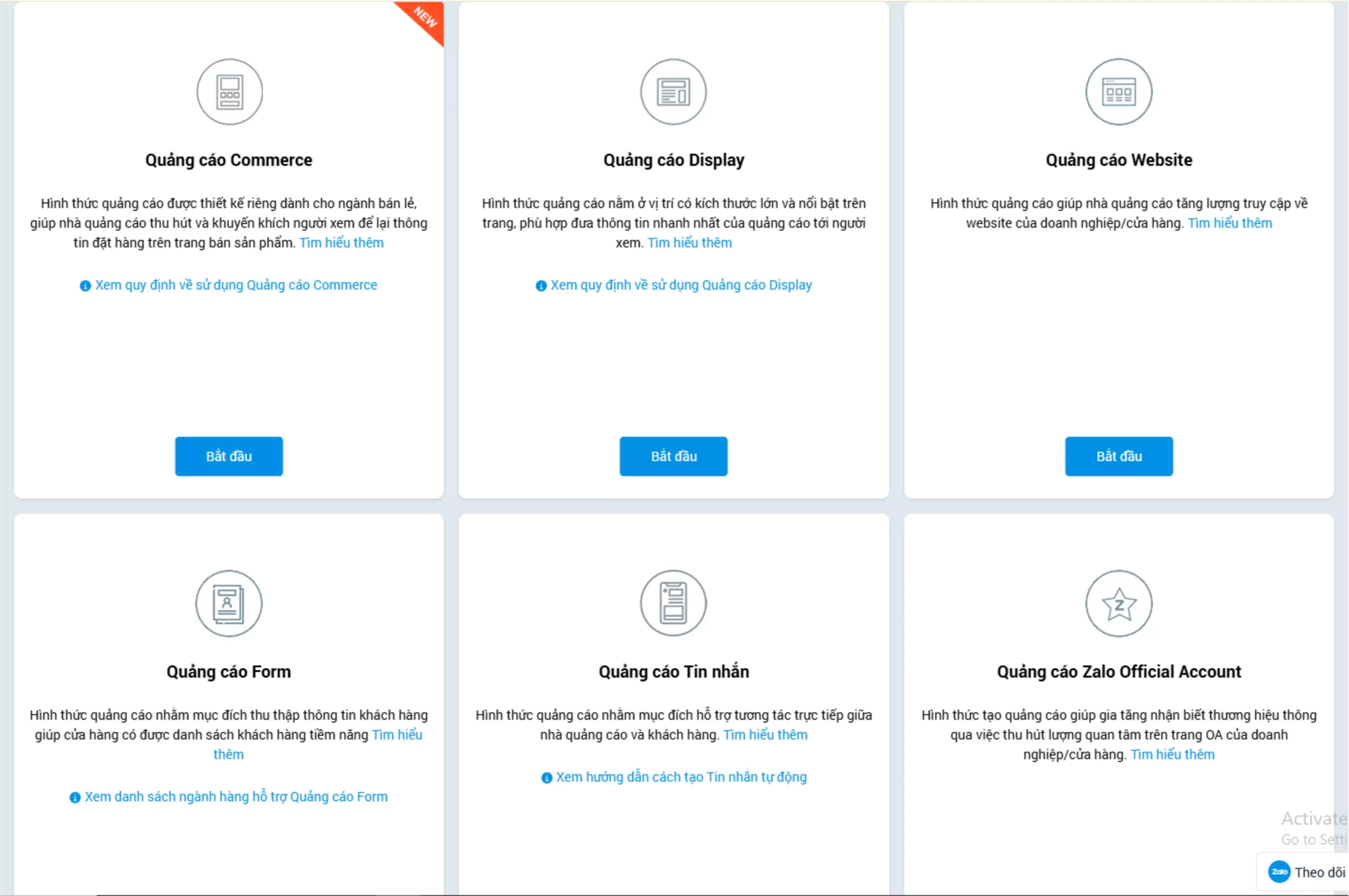 Zalo Ads cung cấp nhiều loại hình quảng cáo phù hợp với từng mục tiêu kinh doanh, bao gồm: