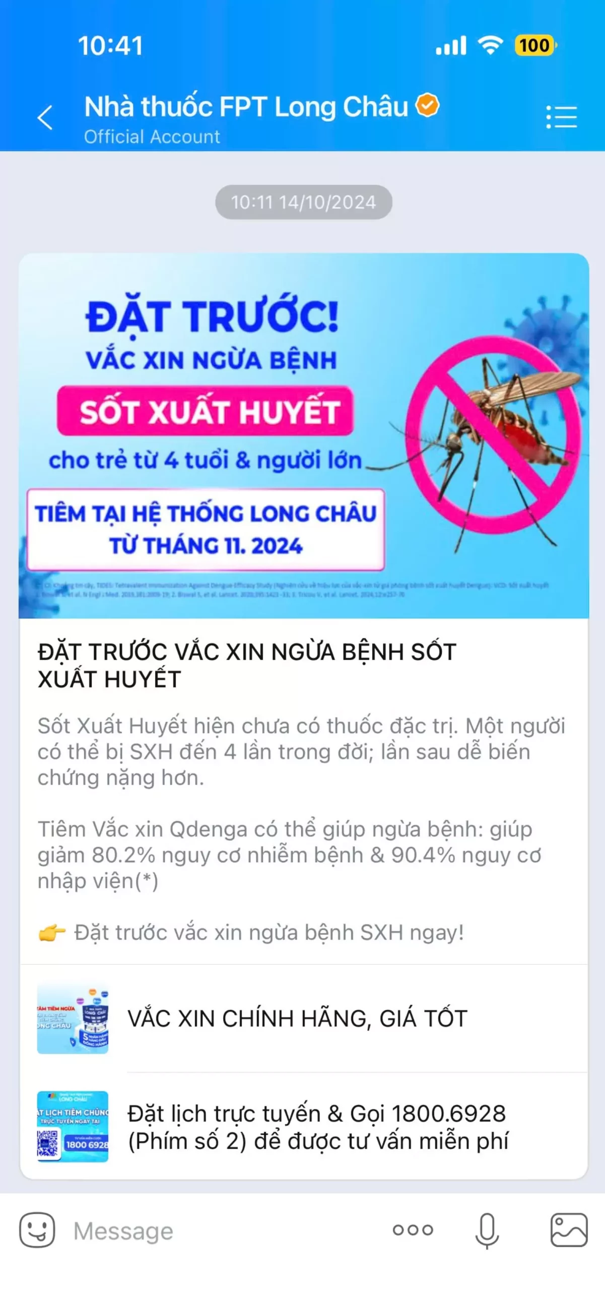 Quảng cáo tin nhắn trên Zalo cho phép doanh nghiệp gửi tin nhắn trực tiếp đến khách hàng tiềm năng ngay trên ứng dụng Zalo. Với hình thức này, doanh nghiệp có thể dễ dàng truyền tải thông điệp về sản phẩm, dịch vụ, hoặc chương trình khuyến mãi một cách nhanh chóng và hiệu quả.