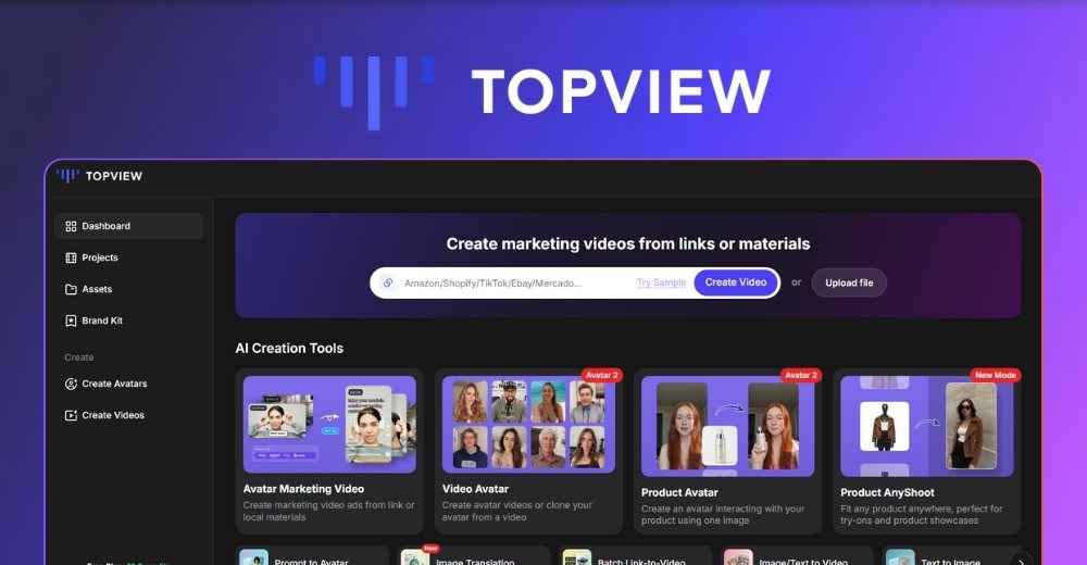 TopView AI là công cụ AI tạo video từ text hoặc link sản phẩm; tập trung vào marketing video viral, kèm script, storyboard, avatars.