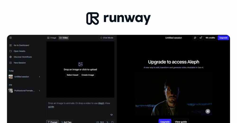 Runway – Một công cụ AI tạo video free với công năng mạnh mẽ, phù hợp cả cho người sáng tạo chuyên nghiệp lẫn cá nhân thử nghiệm (hỗ trợ Gen-4 Turbo, edit video, text→video).