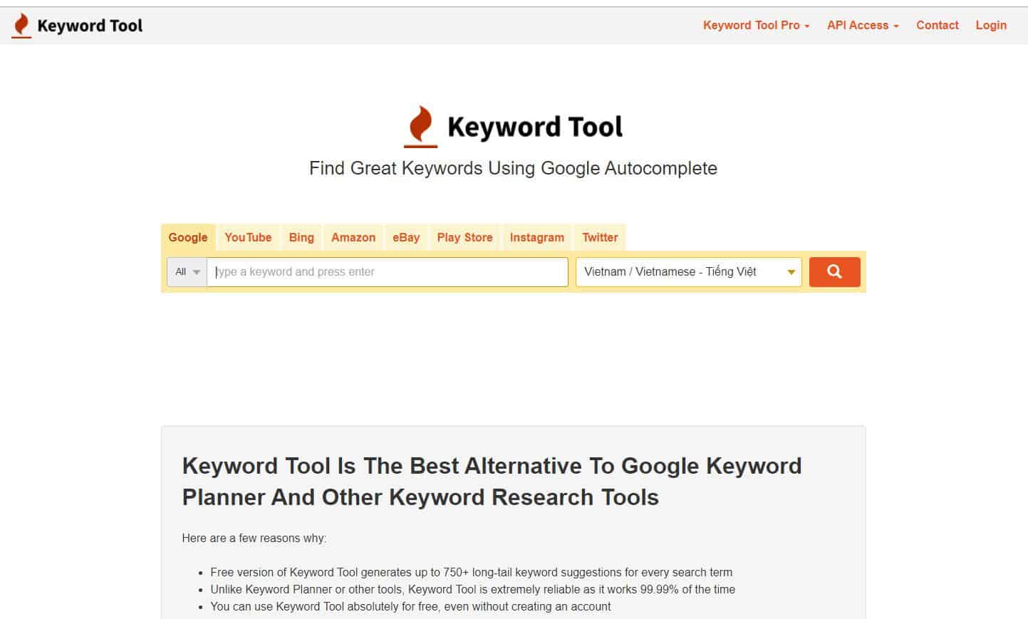 Keywordtool.io là một cách tuyệt vời để tạo danh sách dài các ý tưởng từ khóa.