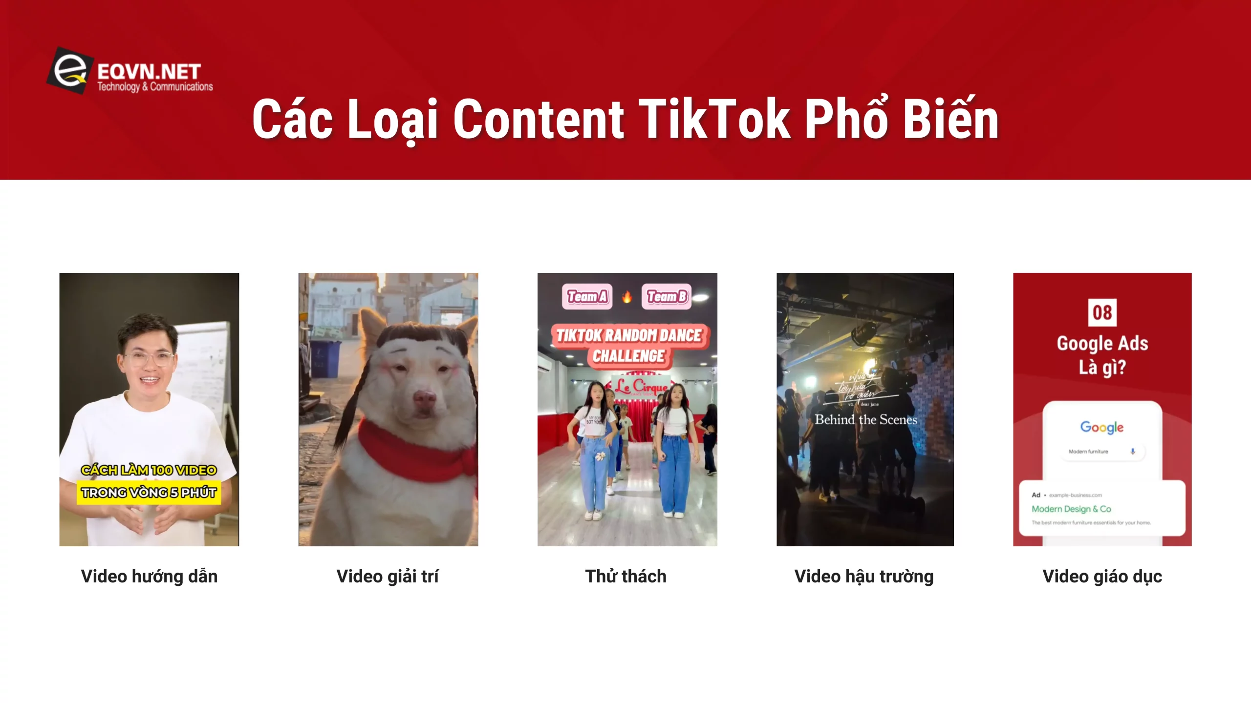 Có nhiều loại Content TikTok mà bạn có thể khai thác để thu hút sự chú ý của người dùng. Dưới đây là một số loại nội dung phổ biến mà bạn có thể cân nhắc khi xây dựng chiến lược nội dung trên kênh TikTok của mình.