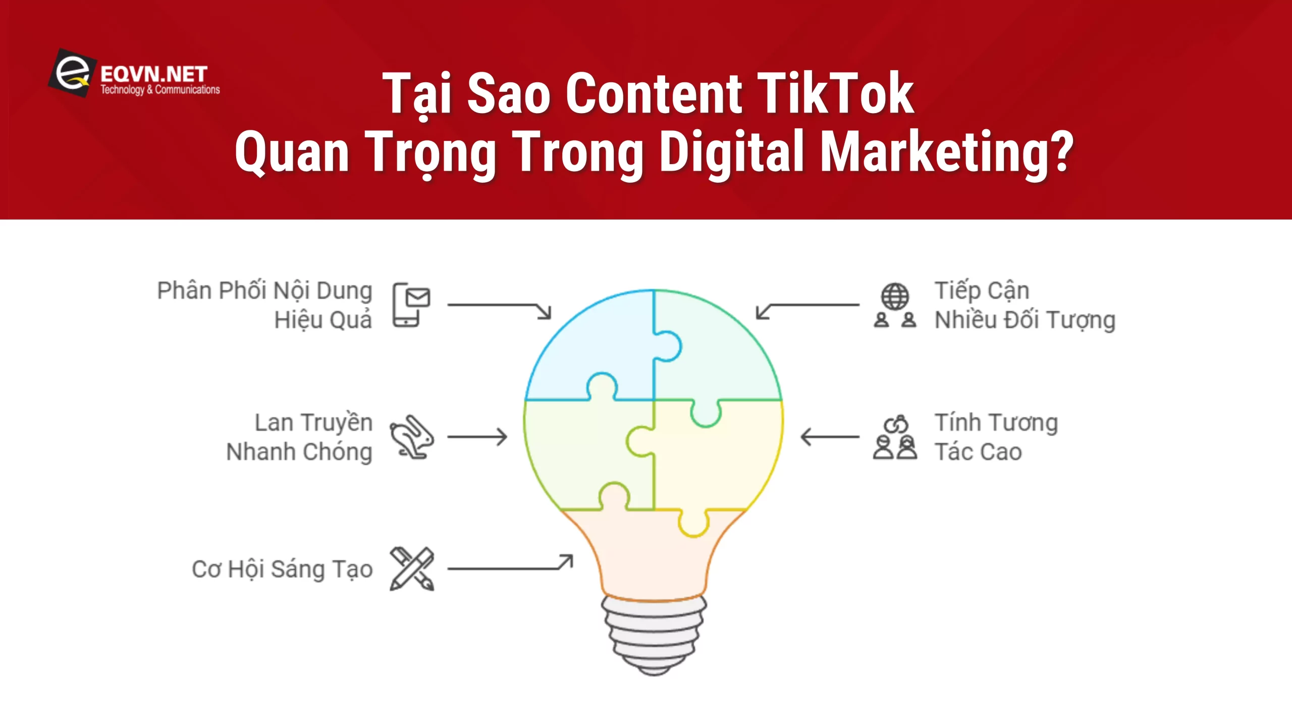 TikTok đã trở thành một nền tảng cực kỳ phổ biến với hàng triệu người dùng trên toàn thế giới. Với sự phát triển nhanh chóng, việc tạo Content TikTok hấp dẫn và dễ lên xu hướng không chỉ giúp các cá nhân xây dựng thương hiệu cá nhân mà còn mang lại cơ hội tiếp cận khách hàng tiềm năng cho các doanh nghiệp. Trong bài viết này, EQVN sẽ giúp bạn khám phá cách tạo Content TikTok hiệu quả, để bạn dễ dàng lên xu hướng và thu hút sự chú ý của cộng đồng người dùng TikTok.