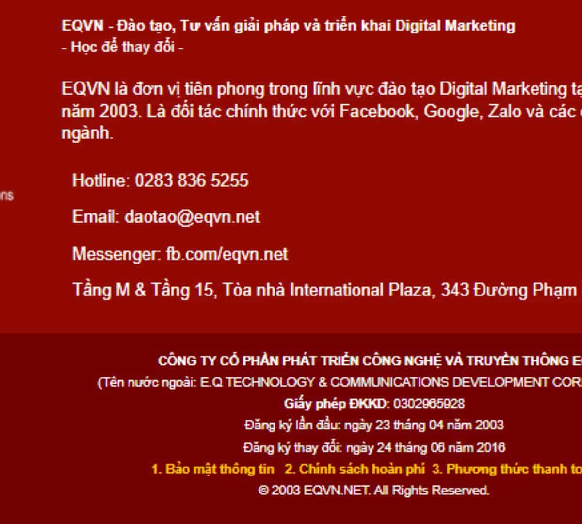 EQVN là đơn vị tiên phong trong lĩnh vực đào tạo Digital Marketing tại Việt Nam từ năm 2003. Là đối tác chính thức với Facebook, Google, Zalo và các đối khác trong ngành