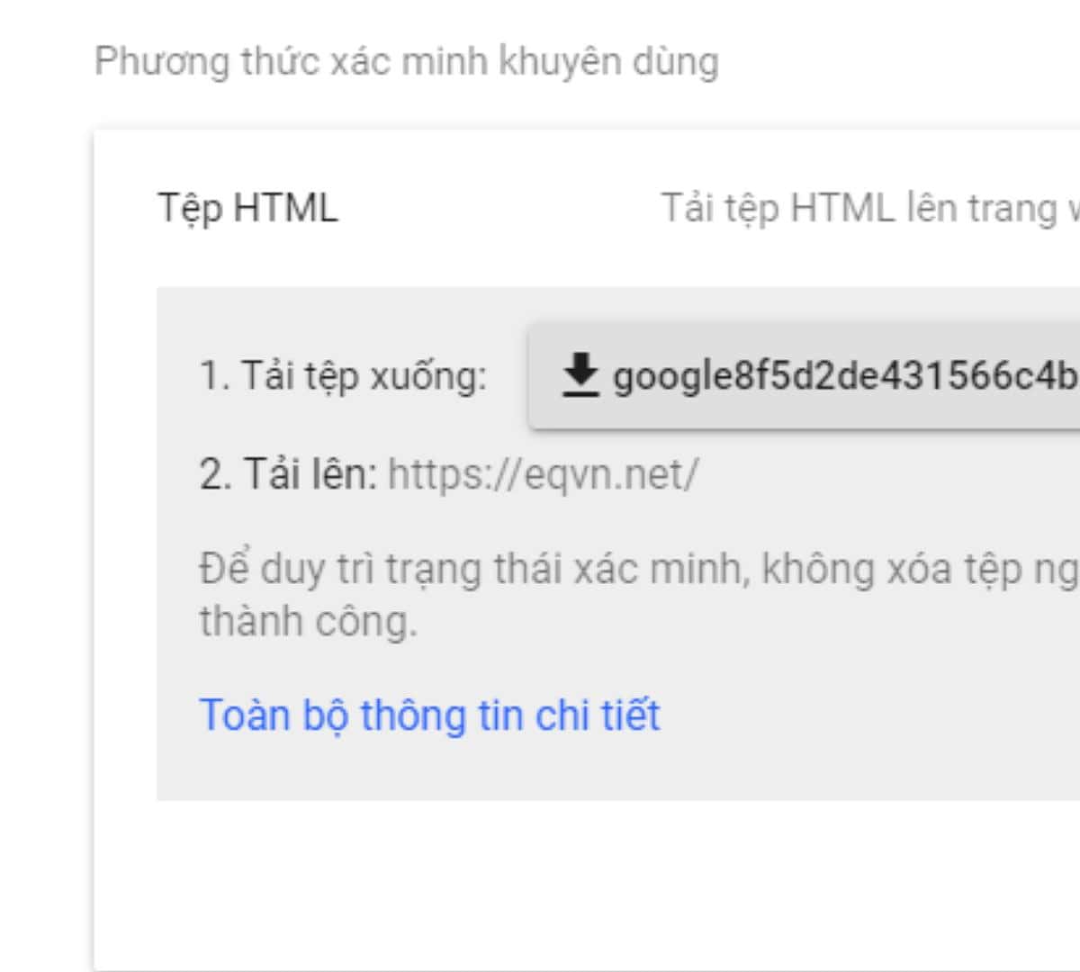 Bước 3: Xác thực website