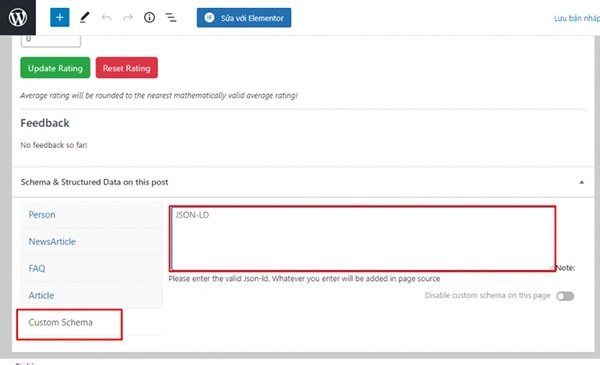 Bước 3: Chèn code JSON-LD vào mục Custom Schema