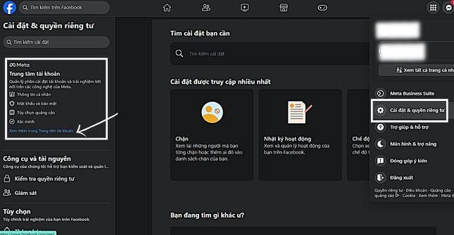 Di chuyển đến phần “Cài đặt”. Trong mục Trung tâm tài khoản của Meta, chọn “Xem thêm trong Trung tâm tài khoản”. Hoặc bạn có thể truy cập vào link: https://accountscenter.facebook.com/?entry_point=app_settings