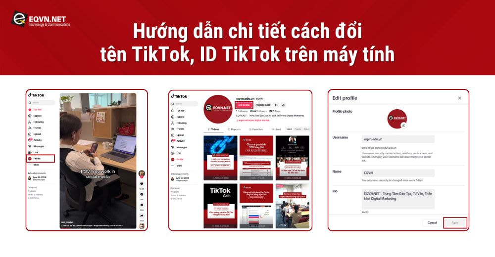 Việc thay đổi tên và ID TikTok là một bước quan trọng để cá nhân hóa thương hiệu và giúp bạn dễ dàng được tìm thấy trên nền tảng này. Nếu bạn muốn hiểu rõ hơn về TikTok, các chính sách TikTok mới nhất và các chiến lược marketing trên nền tảng này, hãy tham gia khóa học TikTok Marketing tại EQVN.
