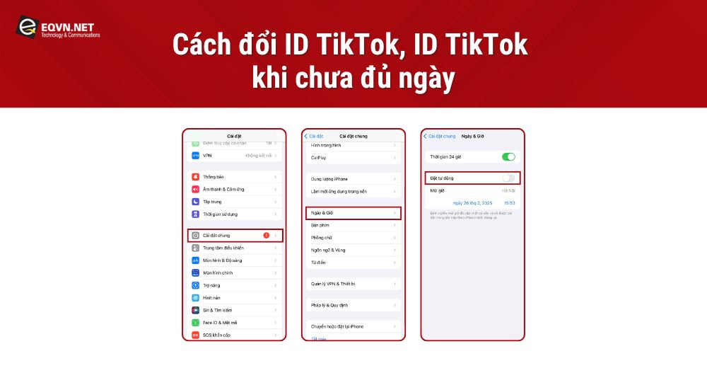 - Sau khi bạn đã thay đổi ID TikTok thành công, hãy quay lại phần Ngày và Giờ trong Cài đặt của điện thoại.