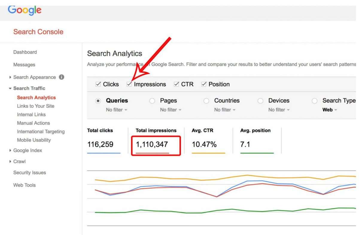 Tuy nhiên trong SEO, impression lại được hiểu theo một cách khác. Đối với những người làm SEO, impression là số lần mà một trang web xuất hiện trong kết quả tìm kiếm tự nhiên. Việc cài đặt công cụ như Google Search Console giúp theo dõi số lần hiển thị trang web, từ đó đo lường và đánh giá hiệu quả của chiến dịch SEO.