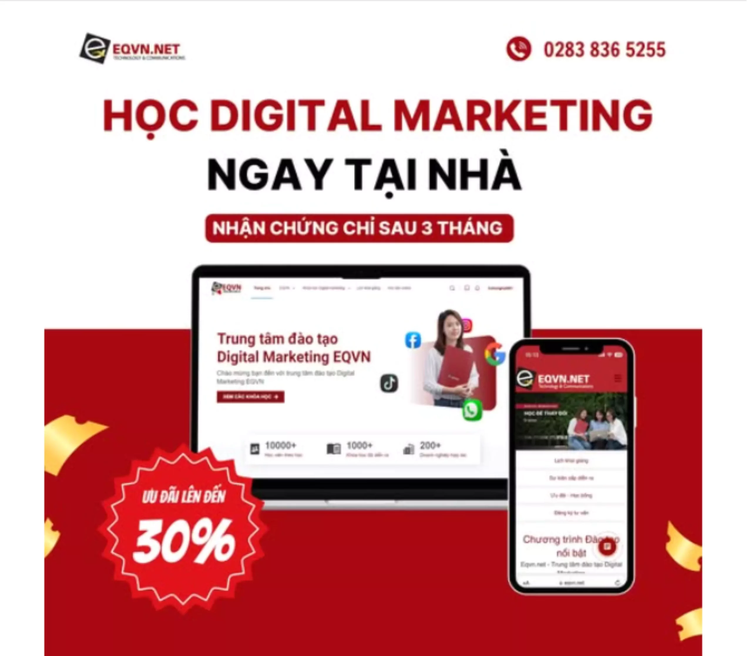 EQVN là đơn vị tiên phong trong lĩnh vực đào tạo khóa học Digital Marketing từ năm 2009 và là đối tác chính thức của Facebook và Google. Với kinh nghiệm hơn 20 năm, chúng tôi sẽ cung cấp cho bạn những kiến thức Digital Marketing mới nhất và hữu ích nhất! Tìm hiểu thêm về EQVN tại đây nhé!