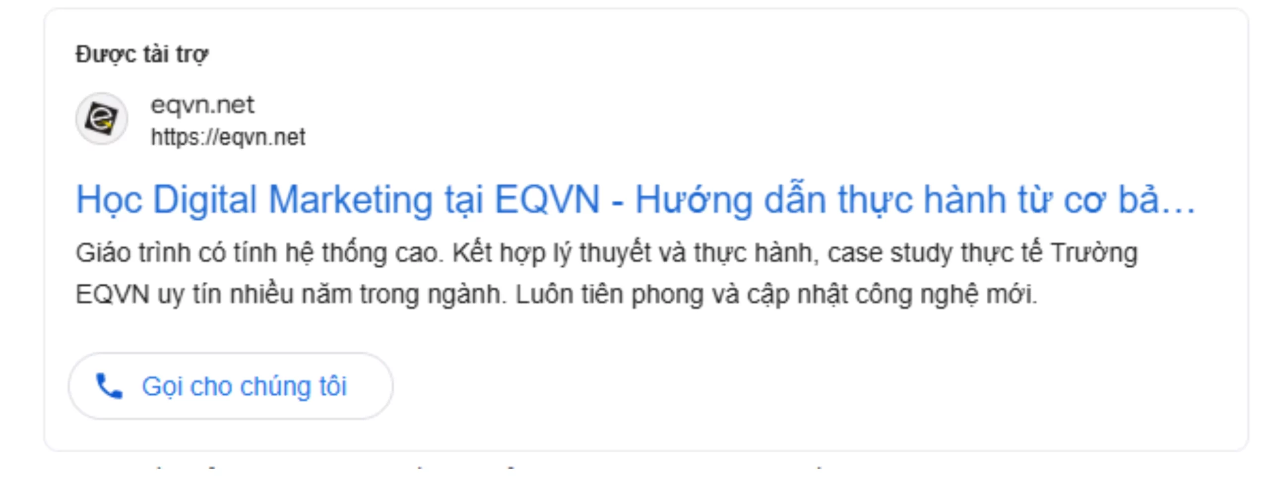 | EQVN là đơn vị tiên phong trong lĩnh vực đào tạo khóa học Digital Marketing từ năm 2009 và là đối tác chính thức của Facebook và Google. Với kinh nghiệm hơn 20 năm, chúng tôi sẽ cung cấp cho bạn những kiến thức Digital Marketing mới nhất và hữu ích nhất! Tìm hiểu thêm về EQVN tại đây nhé! |