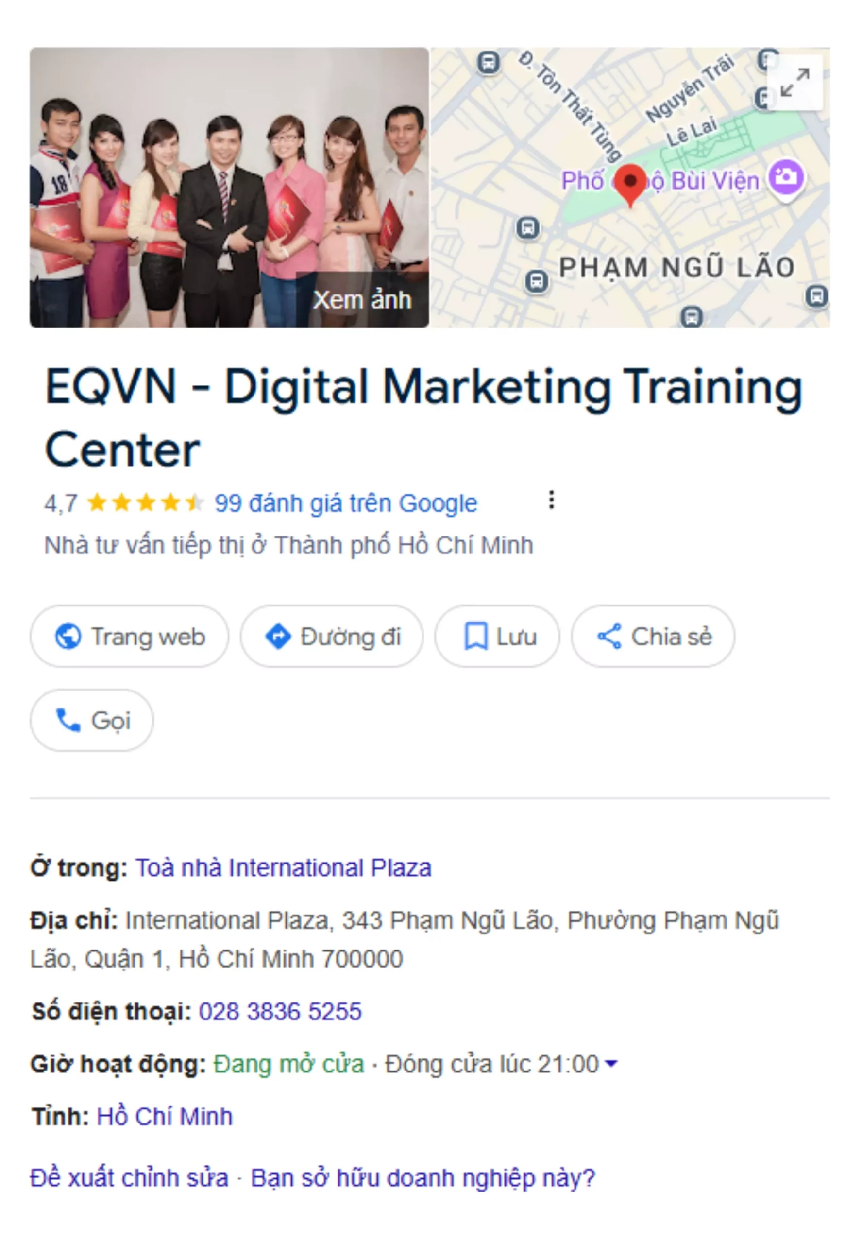 EQVN là đơn vị tiên phong trong lĩnh vực đào tạo khóa học Digital Marketing từ năm 2009 và là đối tác chính thức của Facebook và Google. Với kinh nghiệm hơn 20 năm, chúng tôi sẽ cung cấp cho bạn những kiến thức Digital Marketing mới nhất và hữu ích nhất! Tìm hiểu thêm về EQVN tại đây nhé!
