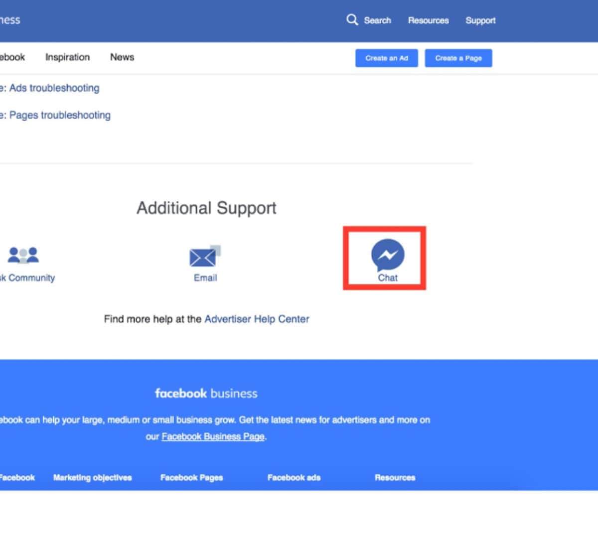 Link chat với đội ngũ hỗ trợ của Facebook: https://www.facebook.com/business/help/support