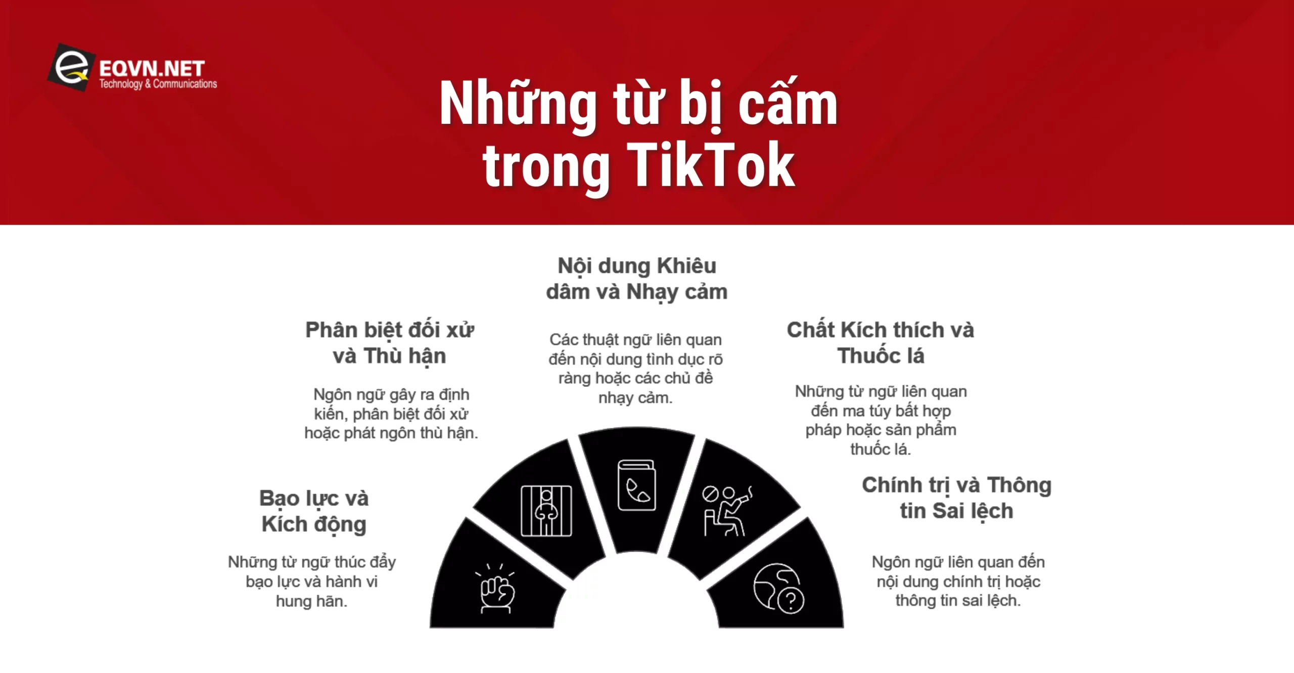 Với sự bùng nổ của TikTok trong lĩnh vực tiếp thị kỹ thuật số, ngày càng nhiều cá nhân và doanh nghiệp tìm cách sử dụng nền tảng này để quảng bá thương hiệu và sản phẩm của mình. Tuy nhiên, thành công trên TikTok không chỉ đến từ khả năng sáng tạo nội dung mà còn từ việc tuân thủ nghiêm ngặt các chính sách nội dung của nền tảng. Vậy làm thế nào để sáng tạo nội dung hấp dẫn mà không vi phạm các quy định của TikTok? Trong bài viết này, EQVN sẽ đi sâu vào những từ bị cấm trong TikTok, lý do tại sao chúng bị cấm, hậu quả của việc vi phạm, và cách để tránh những lỗi phổ biến này.