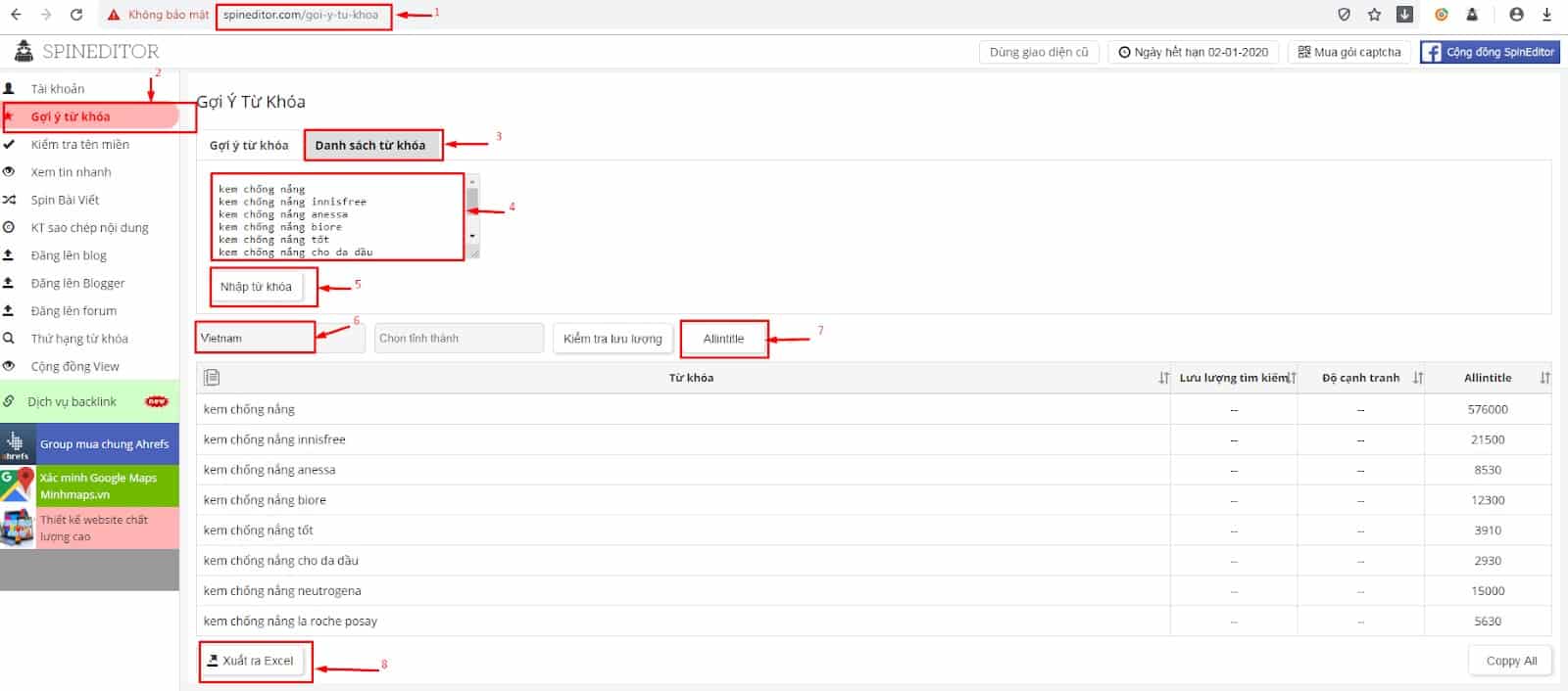 Bạn có thể sử dụng công cụ Spineditor để kiểm tra lượng lớn allintitle cho nhiều từ khóa, giúp tiết kiệm thời gian hơn.