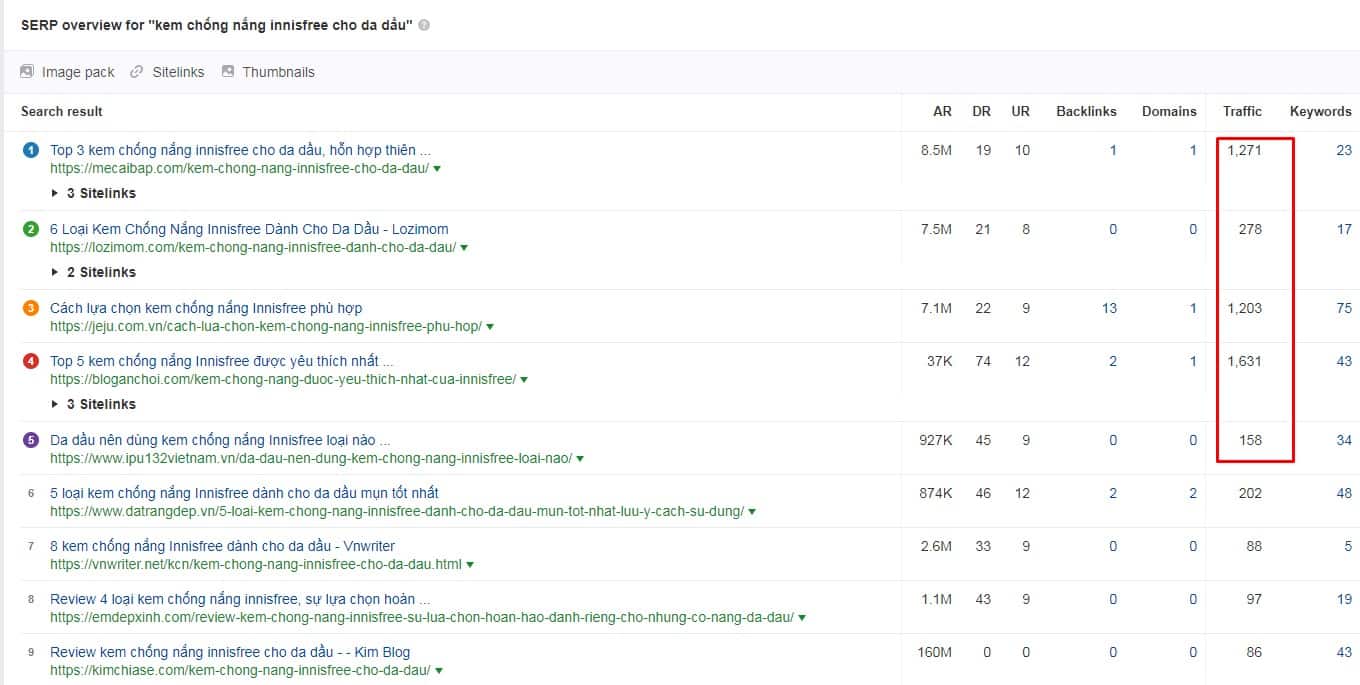 Bạn hãy tính trung bình cộng traffic của top 5 website đầu tiên, rồi điền số liệu vào cột “Traffic” vừa tạo lúc nãy.