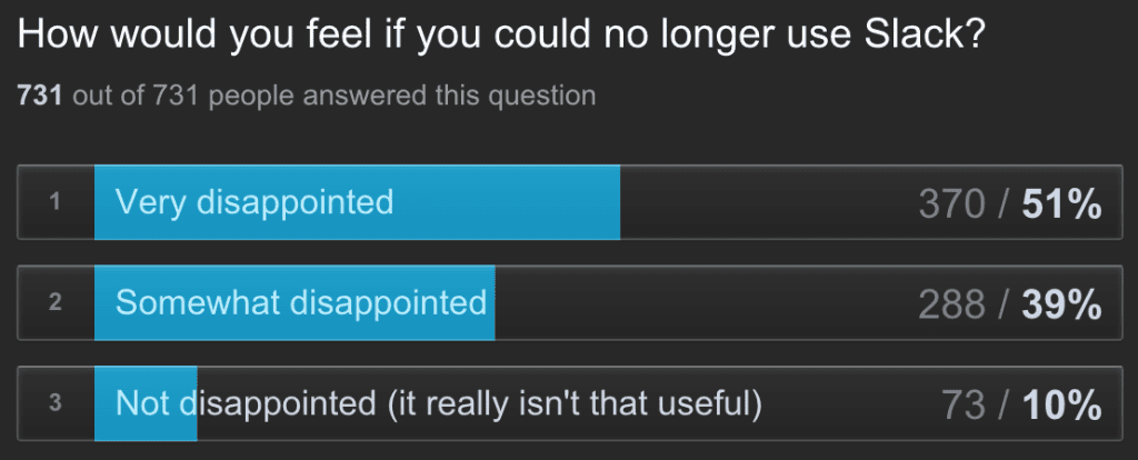 Slack là một trong những startup phát triển một cách đáng kinh ngạc hiện nay. Để khảo sát một số người dùng của Slack, Hiten Shah đã triển khai một thử nghiệm và đưa ra một trong những câu hỏi như sau: