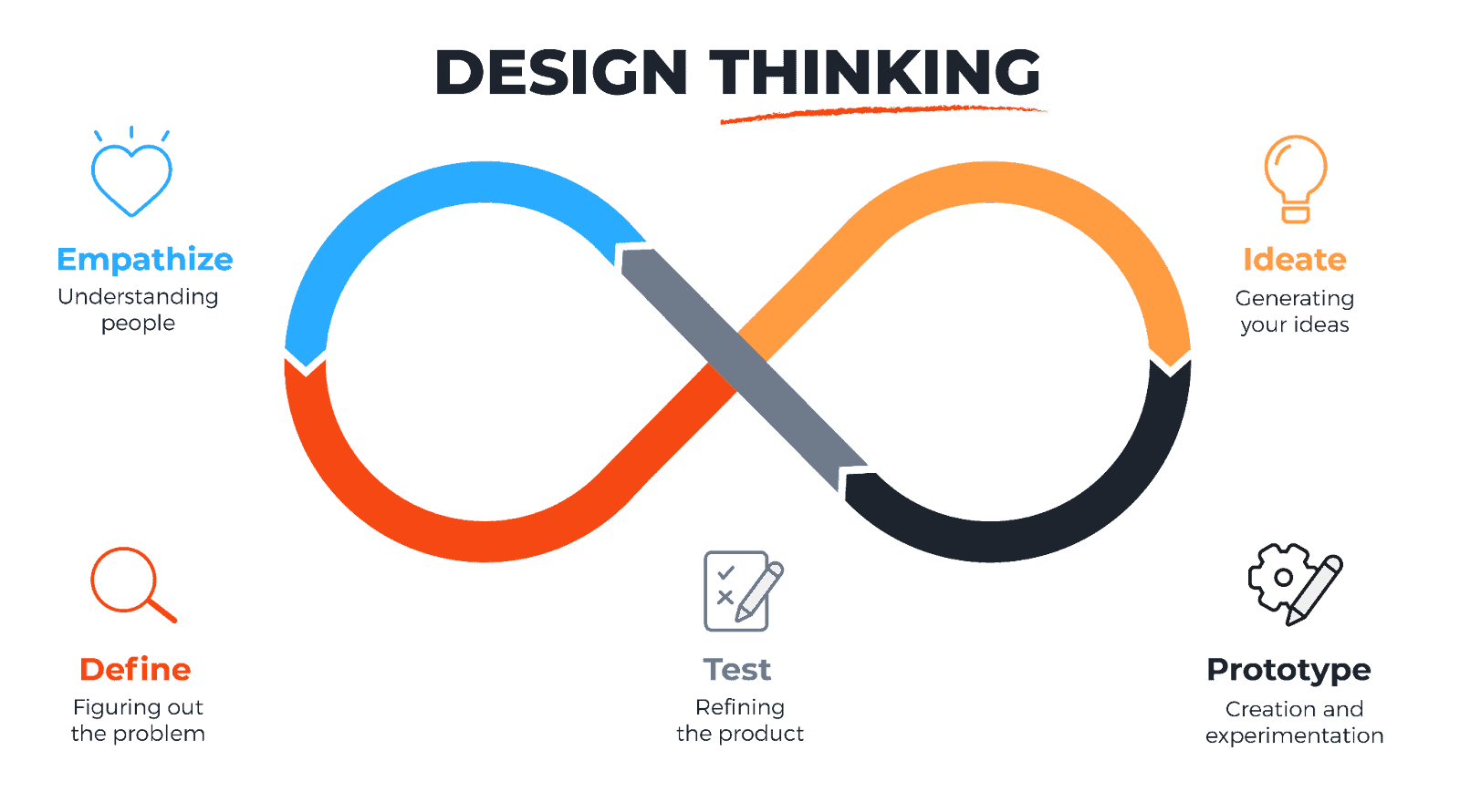 Mô hình Design Thinking bắt nguồn từ các nghiên cứu tâm lý học về sự sáng tạo năm 1940, được Viện Thiết kế Hasso- Platter của Stanford đưa vào giảng dạy.