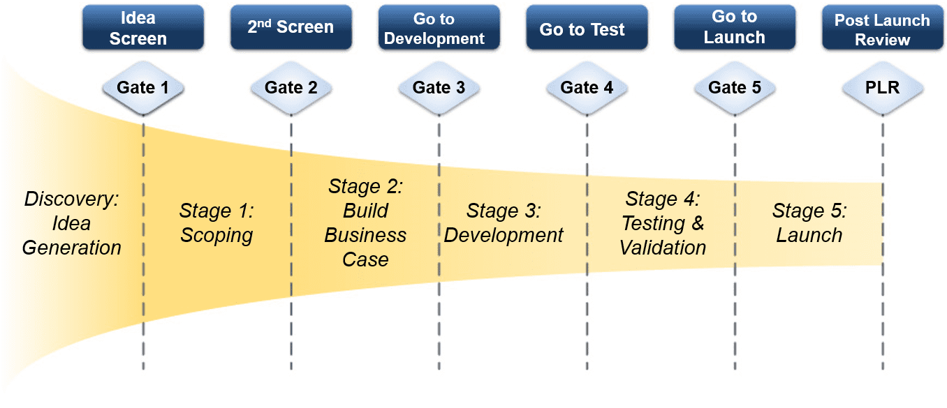 Trước mỗi cổng, doanh nghiệp sẽ cần những dự đoán và thông tin có được để đánh giá chất lượng của ý tưởng ở mỗi cửa, từ đó ra quyết định nên tiếp tiếp tục quy trình hay không.