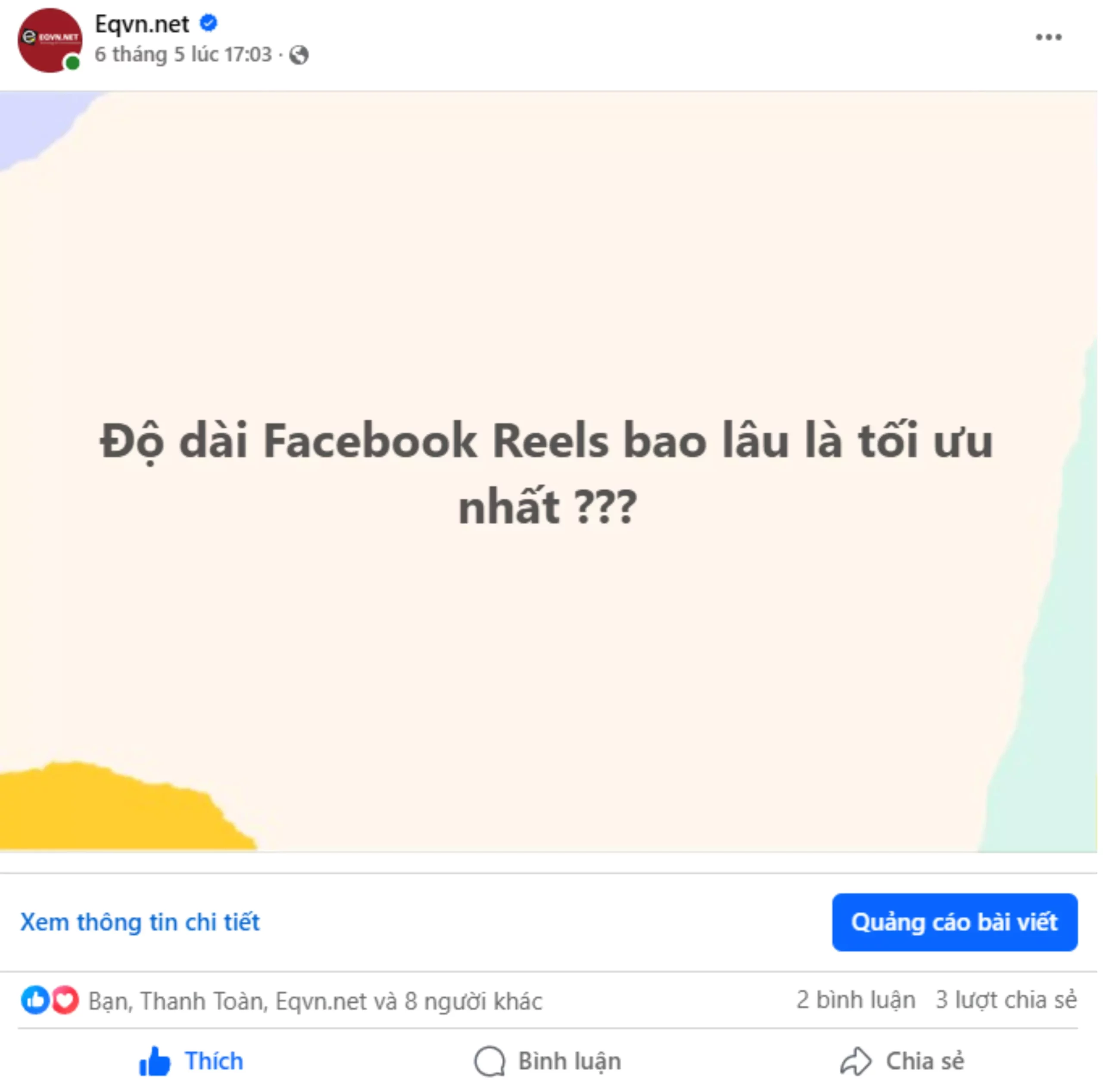 Tác giả: EQVN.NET | Chuyên mục: Facebook marketing | Ngày cập nhật: 08 - 05 - 2025