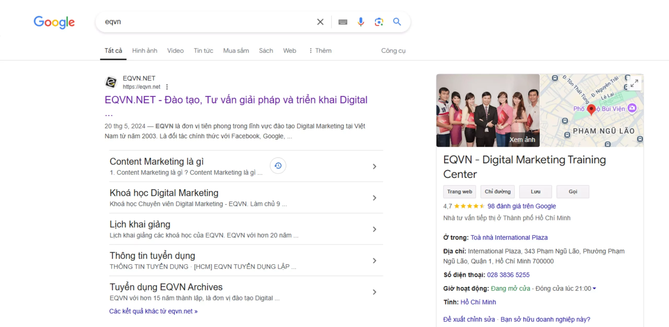 EQVN là đơn vị tiên phong trong lĩnh vực đào tạo khóa học Digital Marketing từ năm 2009 và là đối tác chính thức của Facebook và Google. Với kinh nghiệm hơn 20 năm, chúng tôi sẽ cung cấp cho bạn những kiến thức Digital Marketing mới nhất và hữu ích nhất! Tìm hiểu thêm về EQVN tại đây nhé!